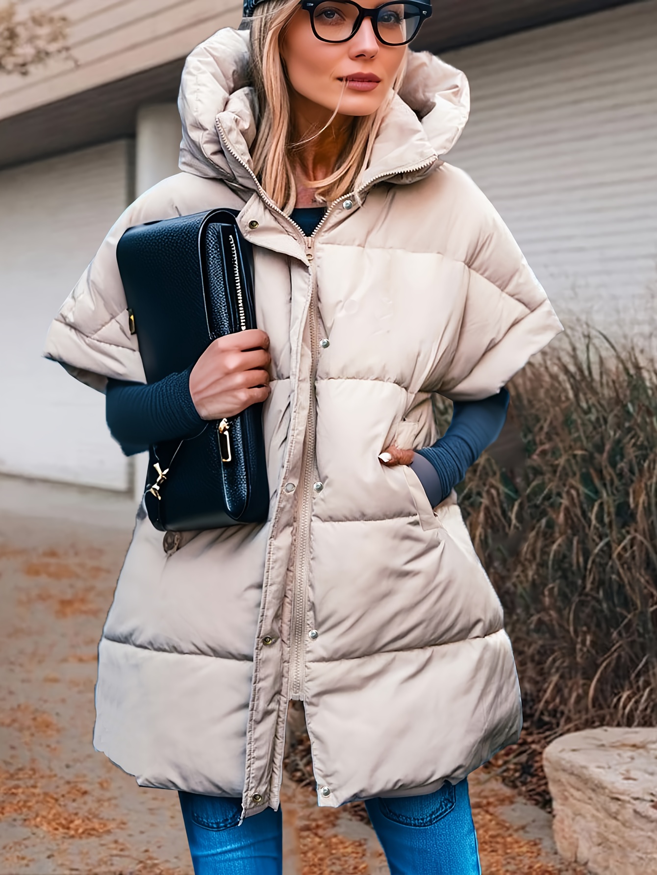Women’S Autumn/Winter Short Sleeve Vest | Casual Solid Color with Drop Shoulder and Pocket Details