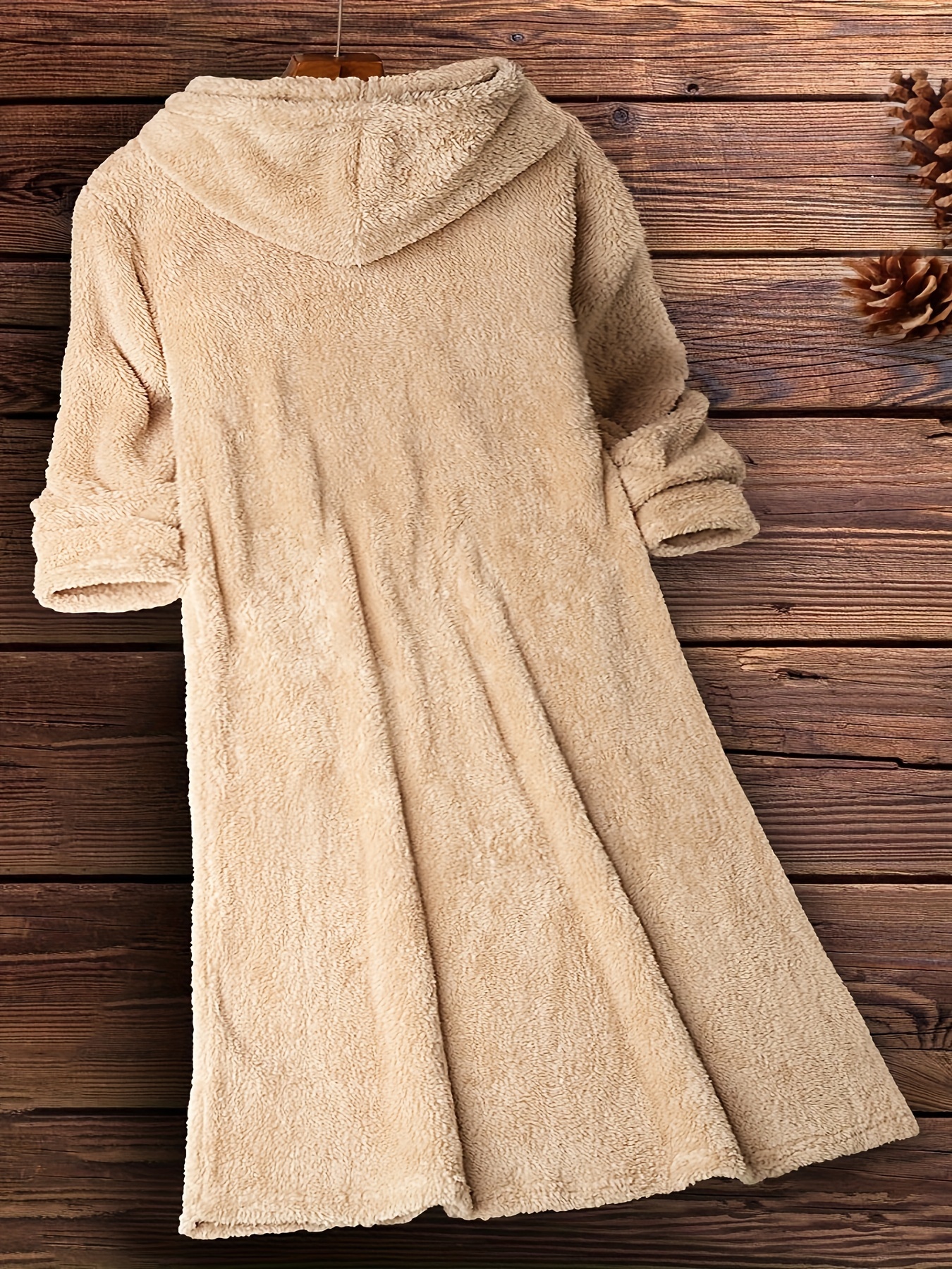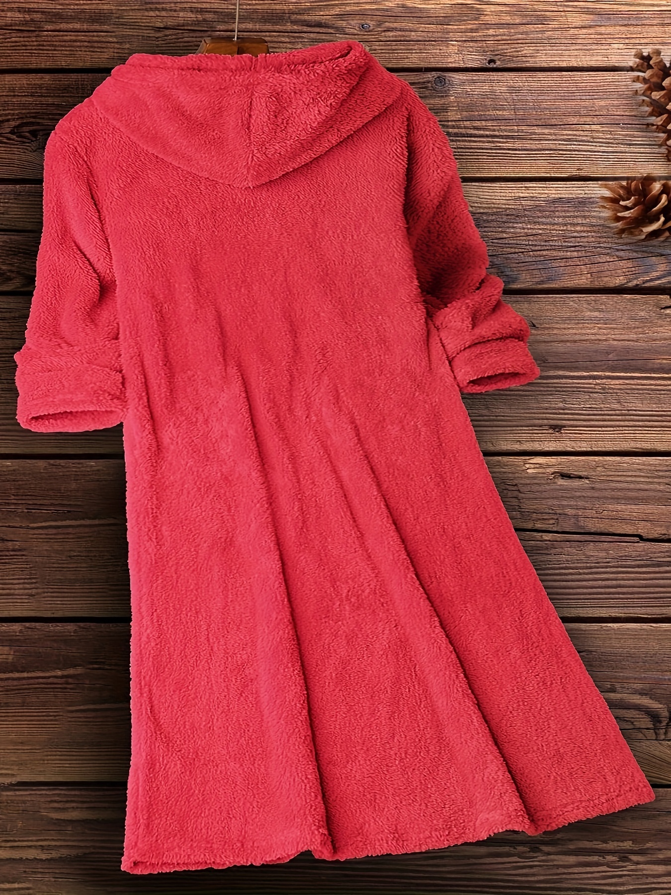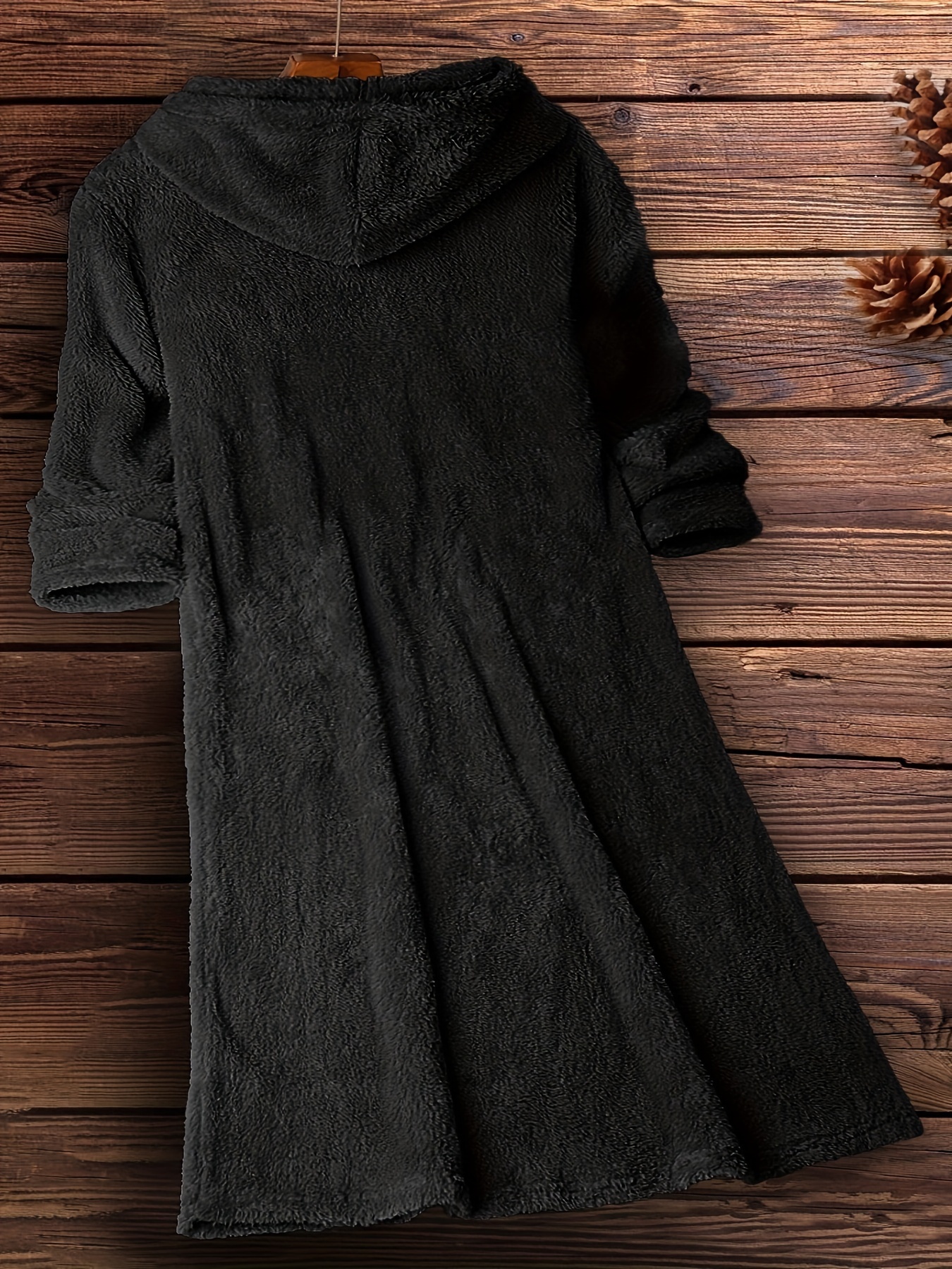 Women’s Plus Size Clothing – Plus Size Fuzzy Hooded Dress – Casual Long Sleeve Dress – With Pockets For Fall & Winter