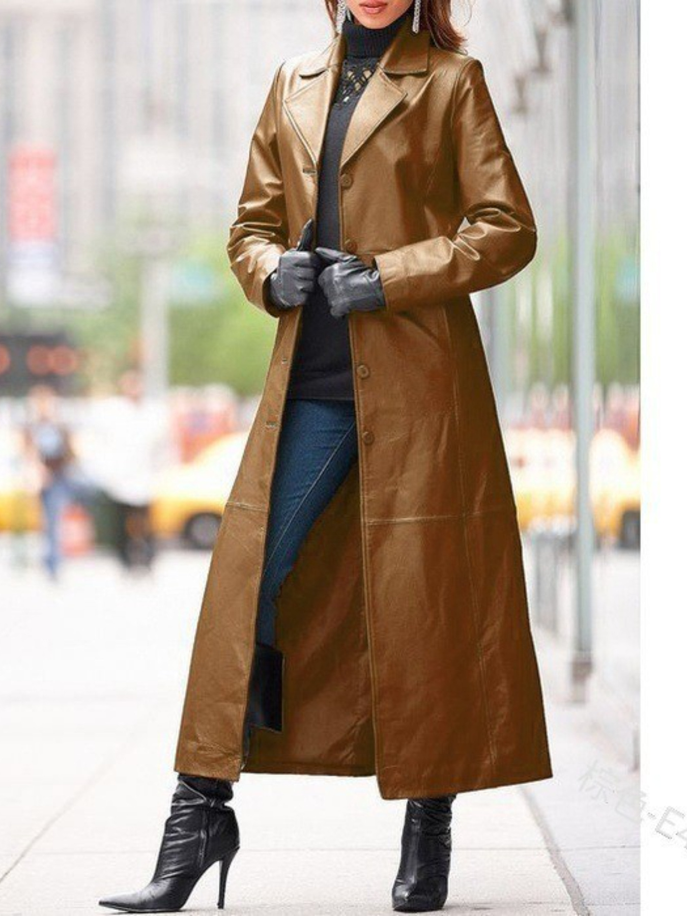 Be the first to review “Women’s Faux Leather Trench Coat Slim-Fit Belted Jacket” Cancel reply
