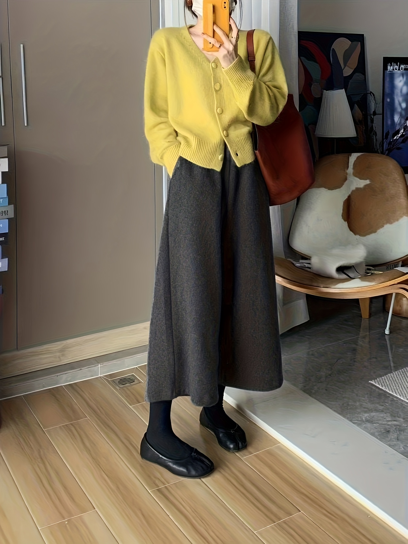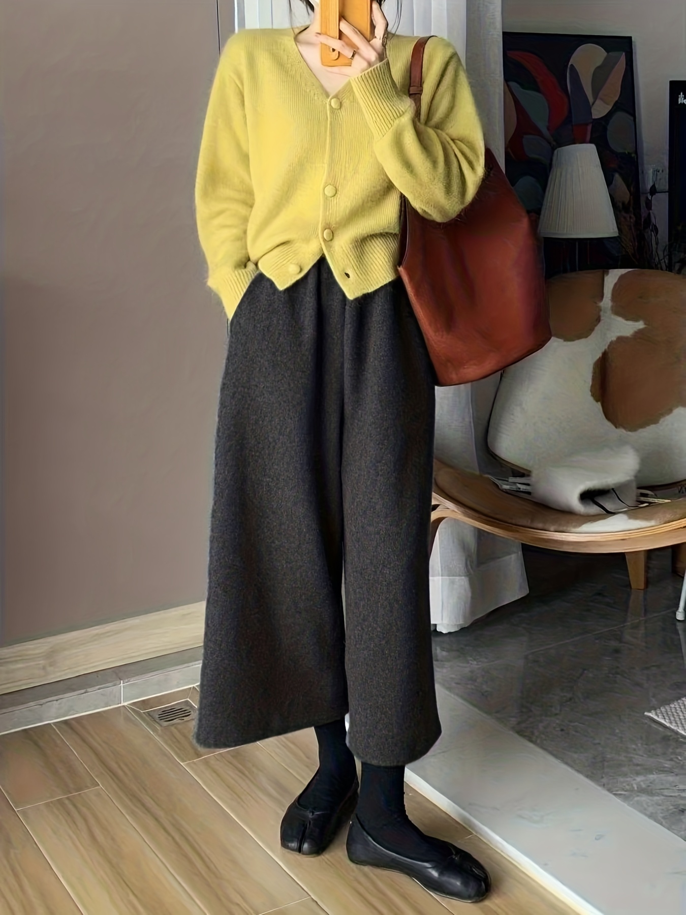 Be the first to review “Women’s Winter Wide-Leg Tweed Pants with Elastic Waist – Loose Fit ¾ Length Trousers, Solid Color Casual for Cold Weather, Pockets (No Required)” Cancel reply