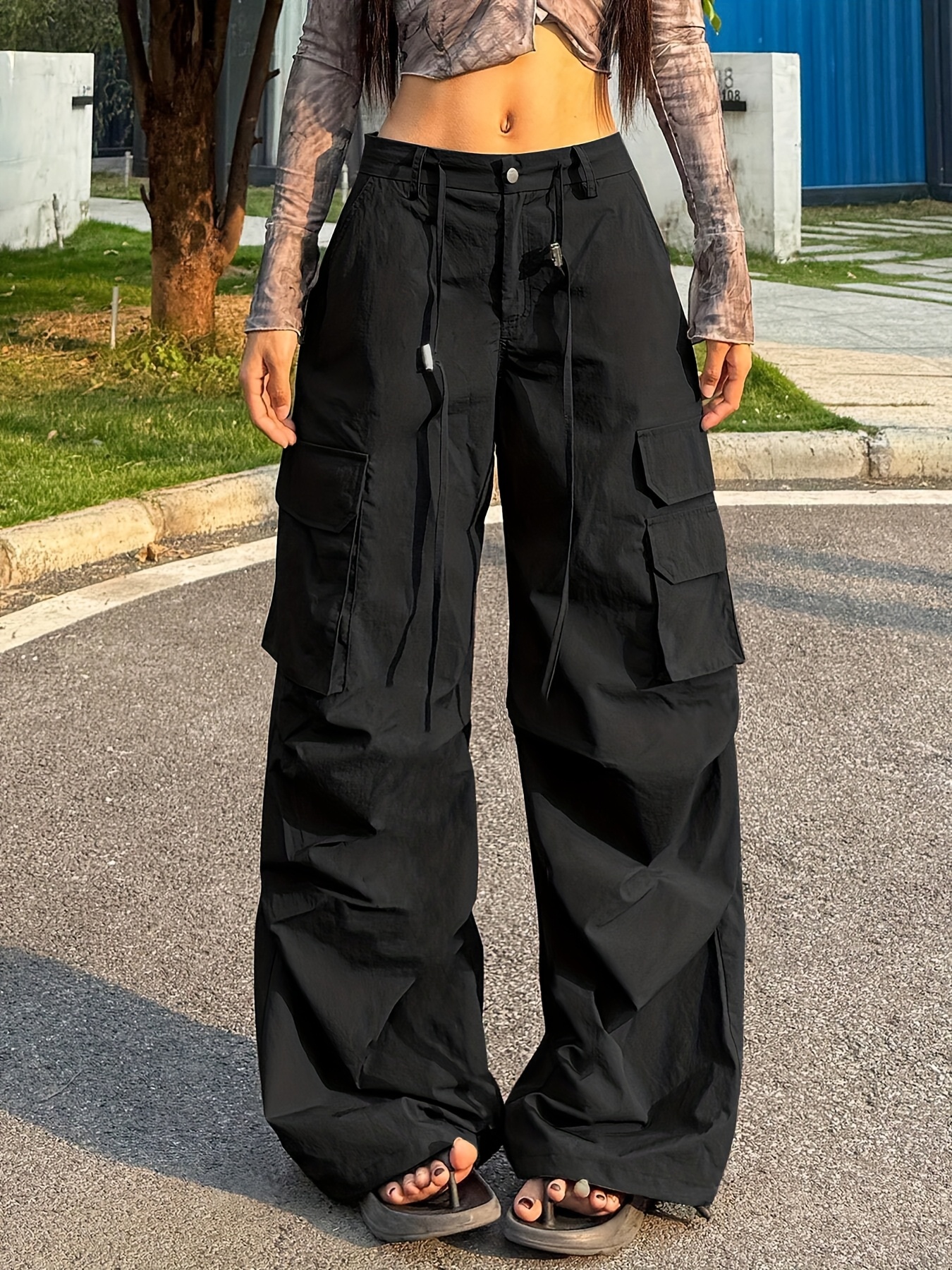 Women’S Y2K Cargo Pants – All-Season Loose Fit Trousers with Multiple Utility Pockets, Button Closure, Non-Stretch Fabric for Everyday & Formal Outfits – All-Season