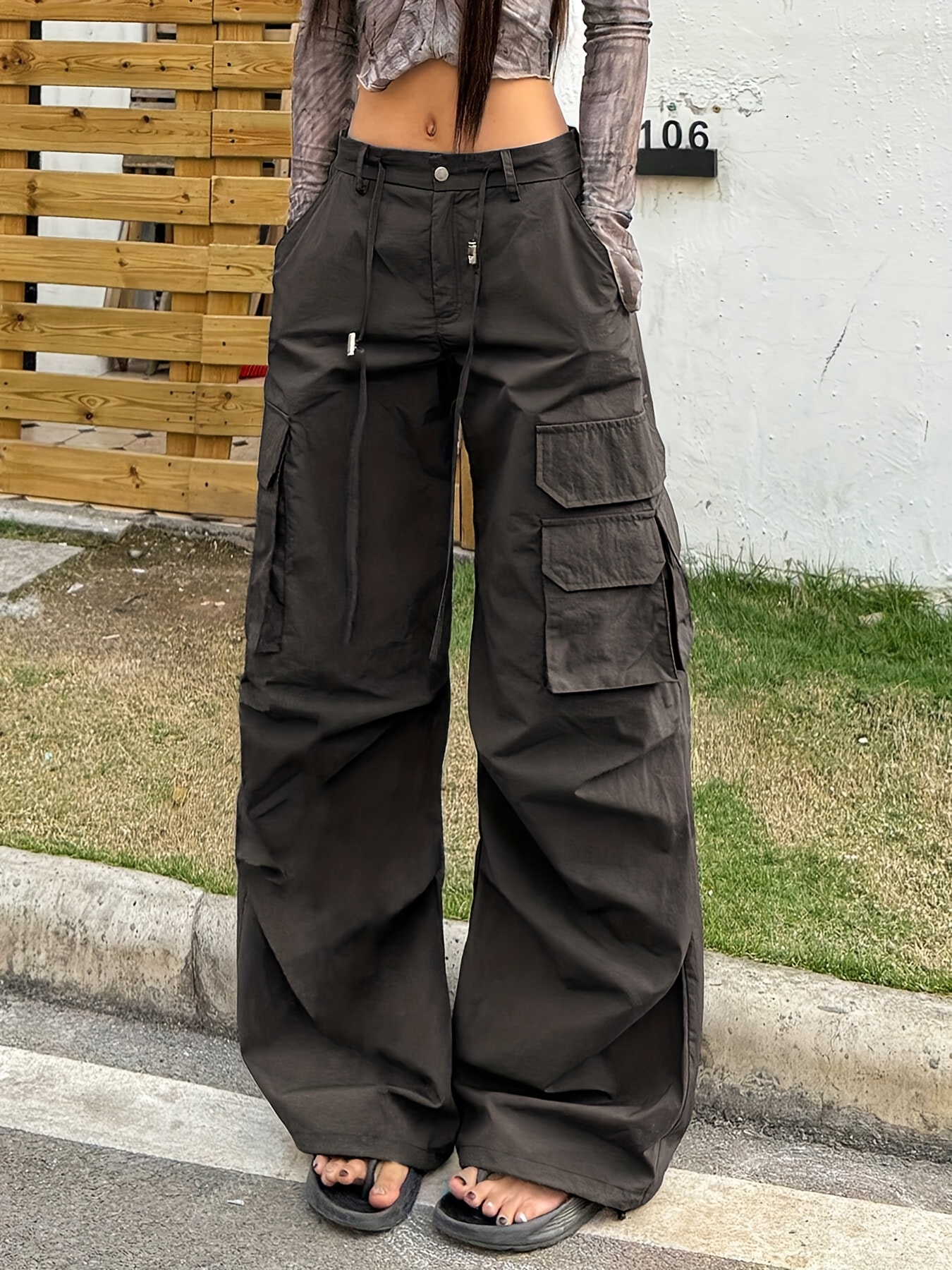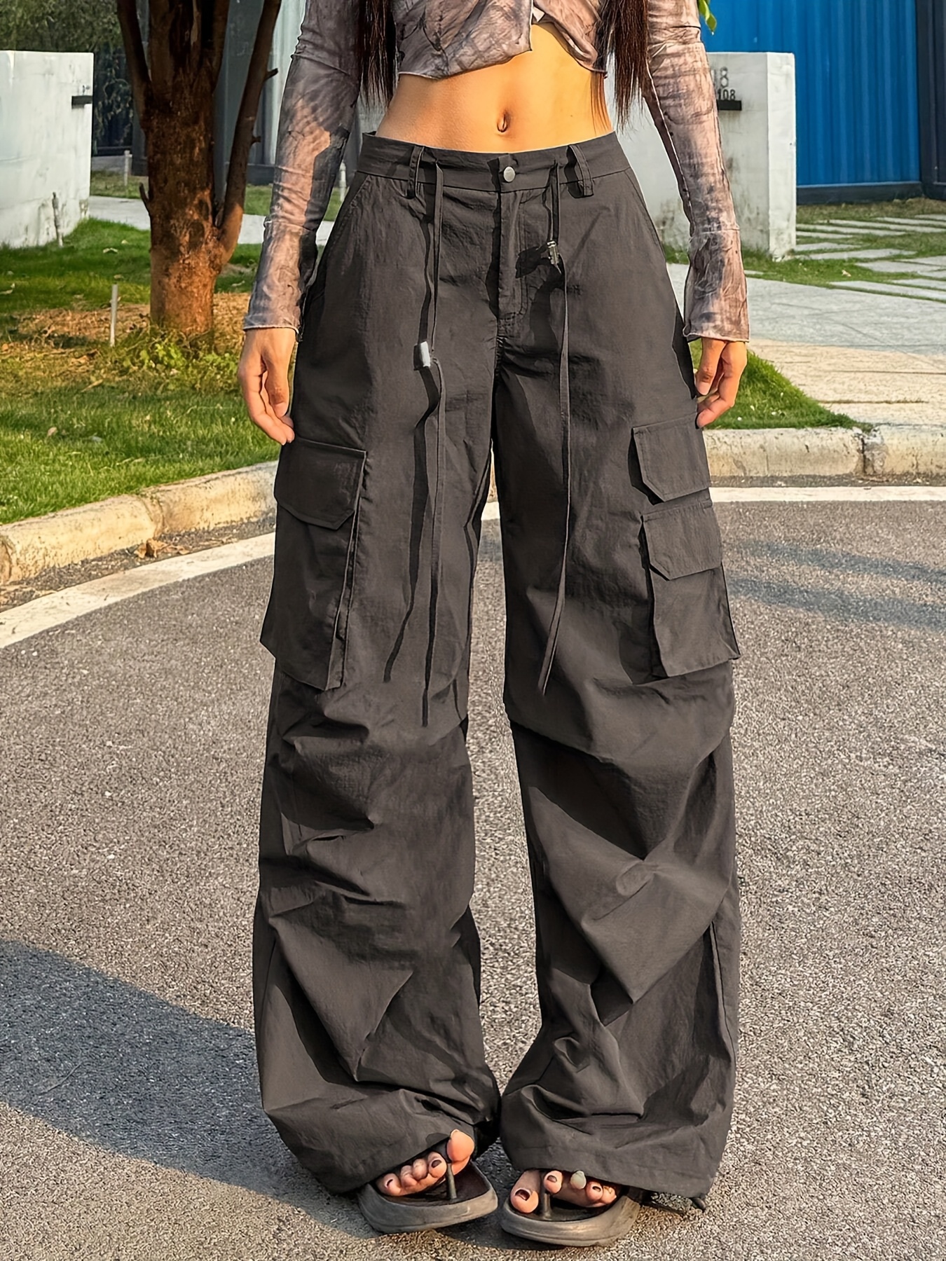 Women’S Y2K Cargo Pants – All-Season Loose Fit Trousers with Multiple Utility Pockets, Button Closure, Non-Stretch Fabric for Everyday & Formal Outfits – All-Season