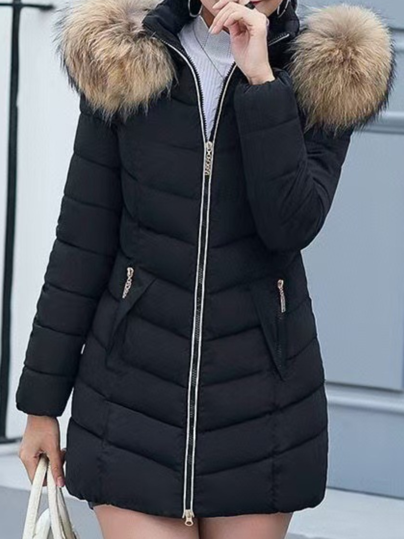 Women’s Korean Style Winter Coat – Thick Warm Slim-Fit Mid-Length Jacket with Full-Zip, Long Sleeve Outerwear in Green/Navy