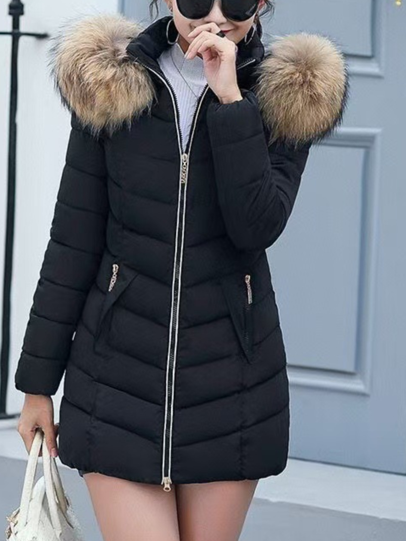 Women’s Korean Style Winter Coat – Thick Warm Slim-Fit Mid-Length Jacket with Full-Zip, Long Sleeve Outerwear in Green/Navy