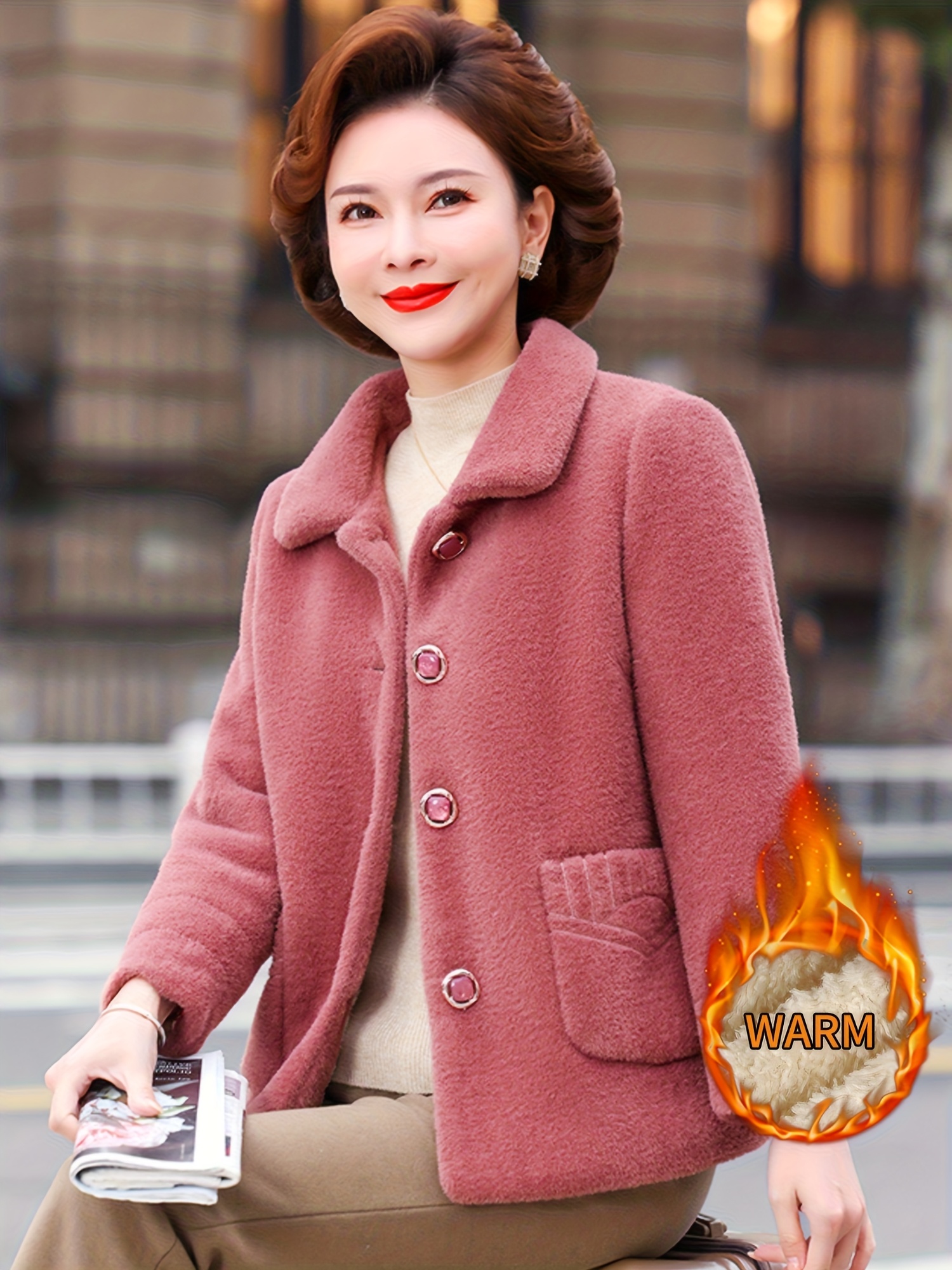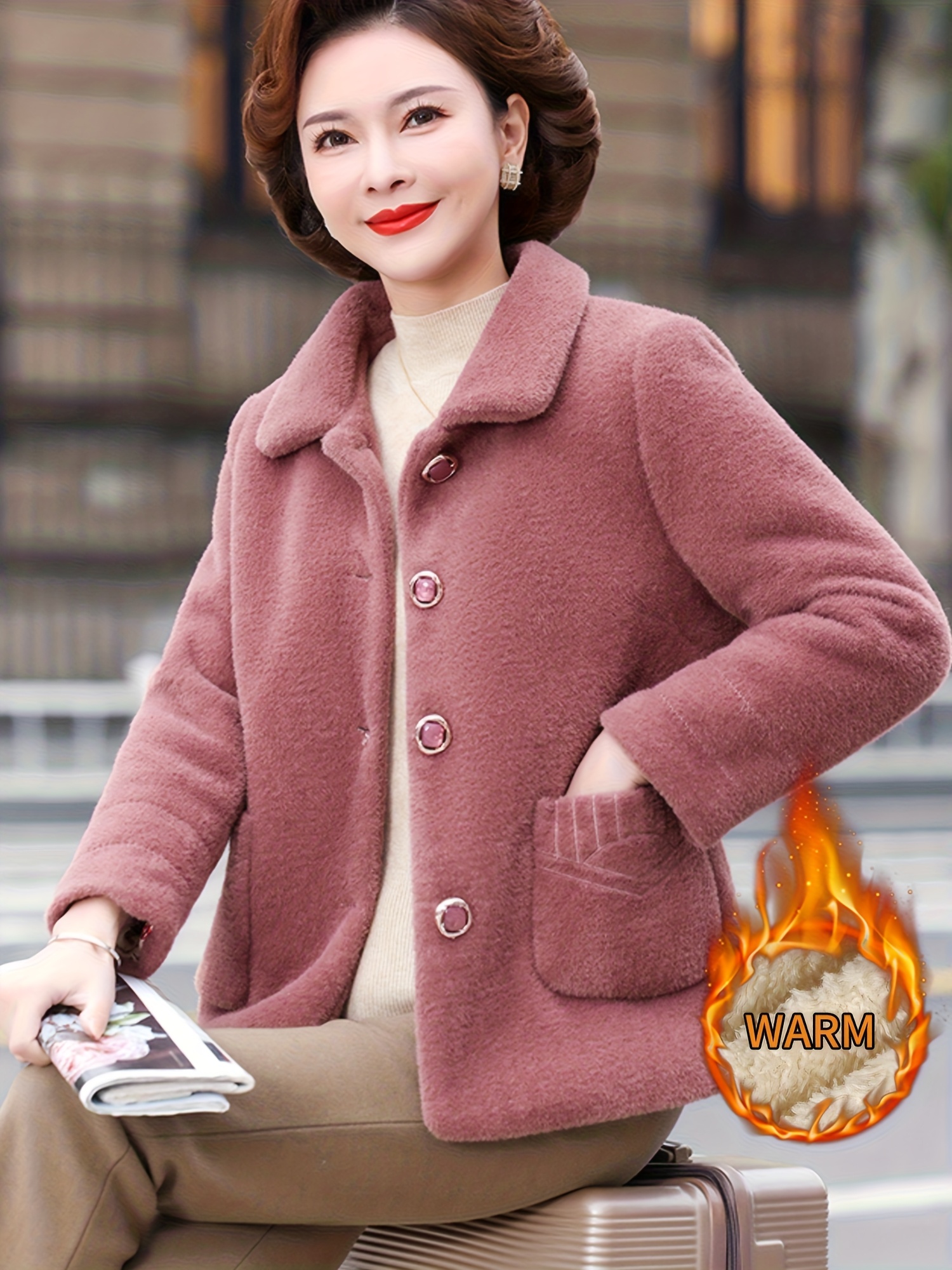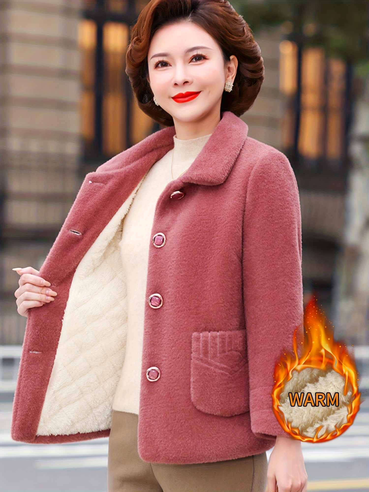 Women’s Short Winter Coat – Thickened Lined Outerwear with Pockets, Elegant Warm Jacket for Daily Use & Office Wear